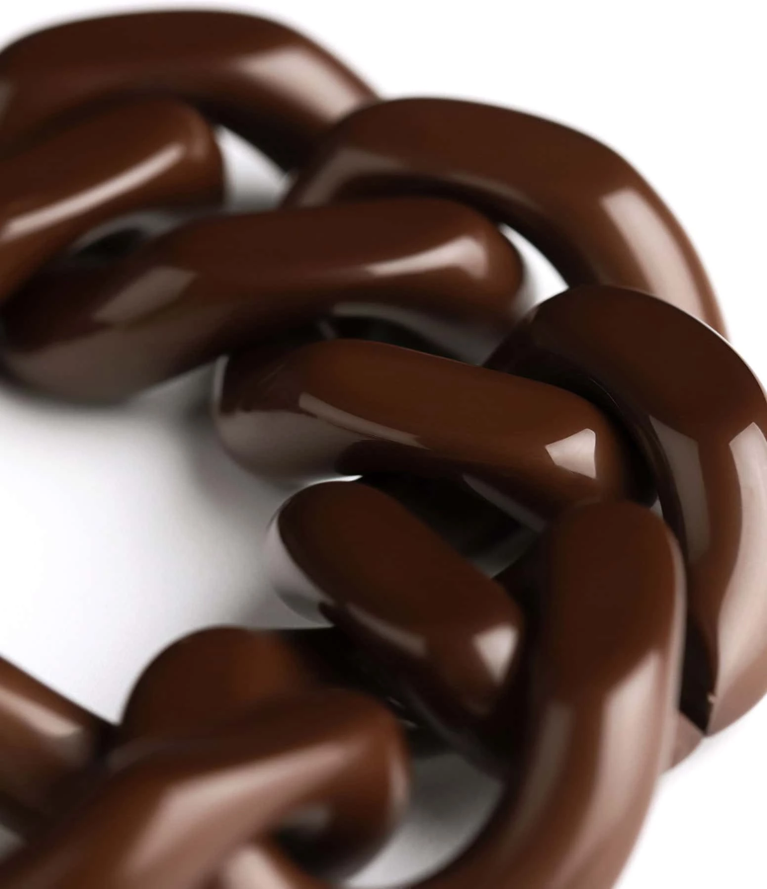 Bracelet à maillons plats marrons brillants. Fermoir à ressort.