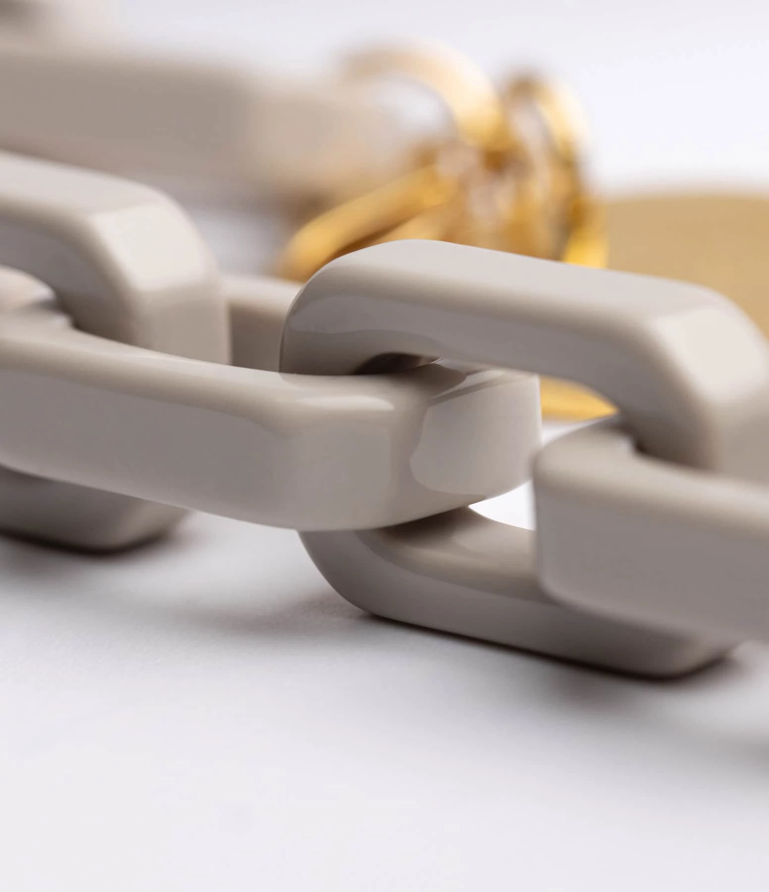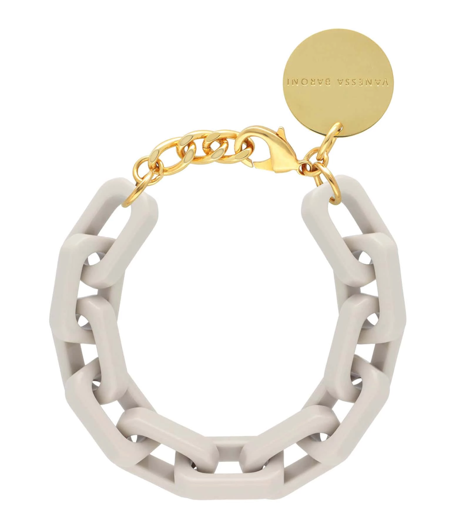Bracelet à petits maillons rectangulaires gris. Fermoir classique à ressort.