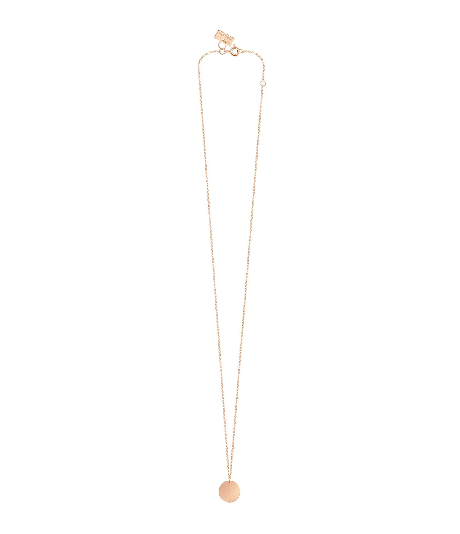 Collier sur chaîne en or rose avec pendentif rond. Fermoir classique.