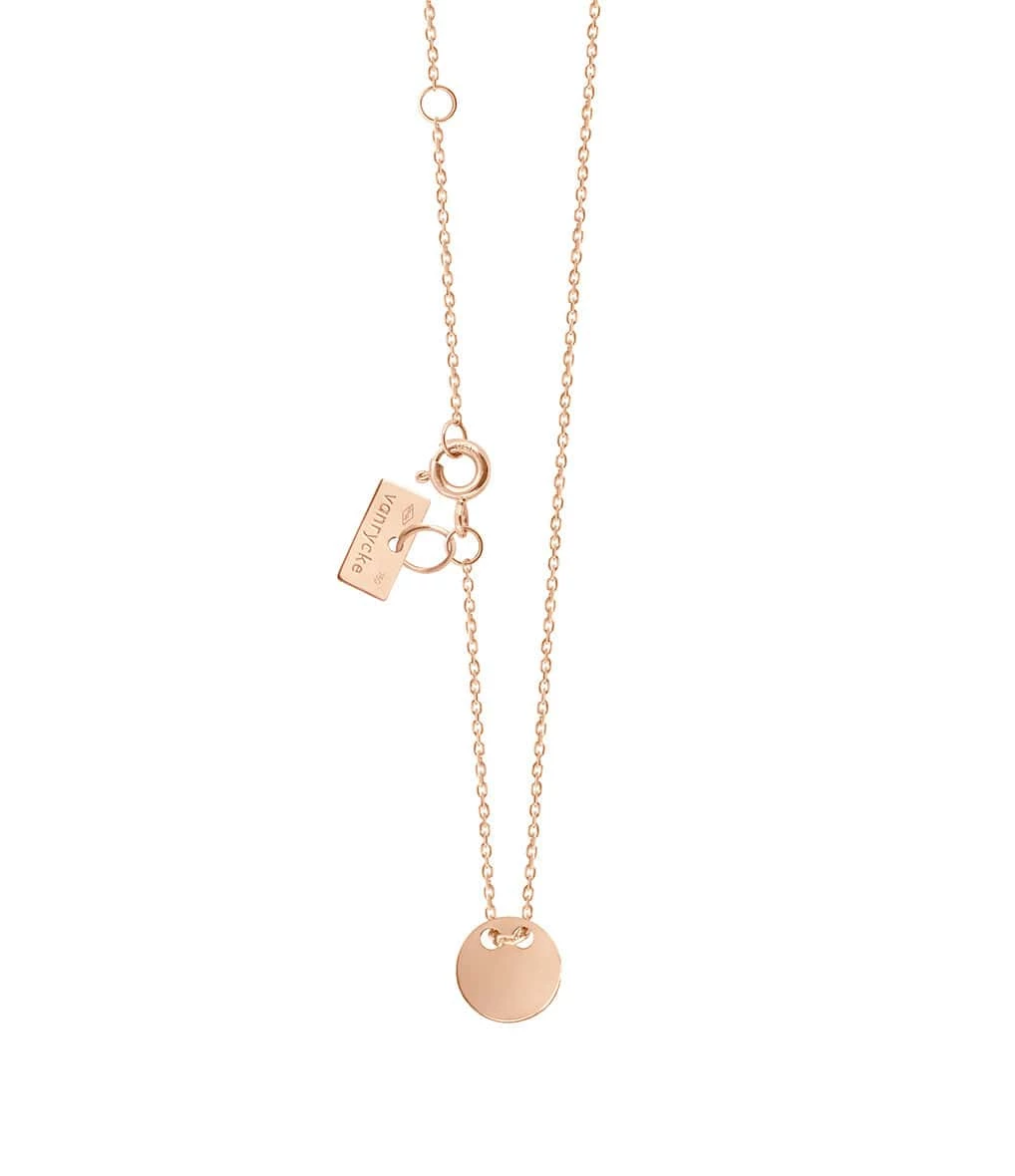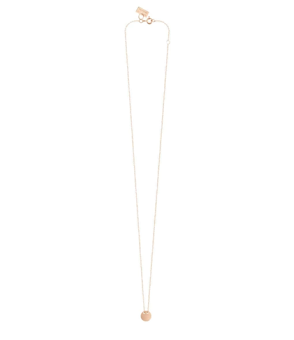Collier sur chaîne en or rose avec pendentif rond. Fermoir classique.
