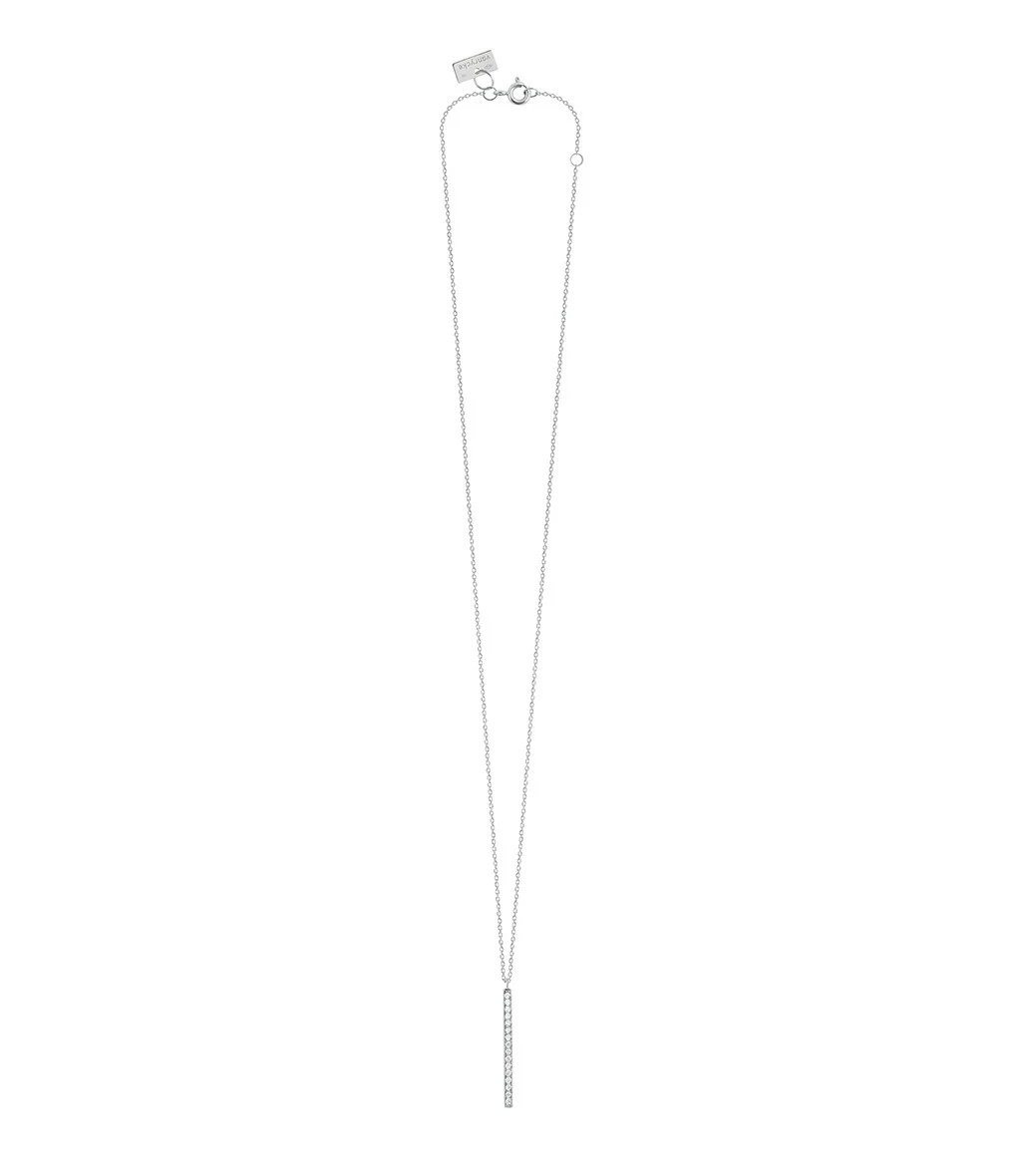 Collier sur chaîne en or blanc, barrette sertie de diamants. Fermoir classique.