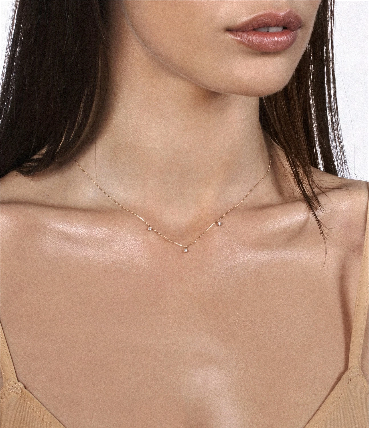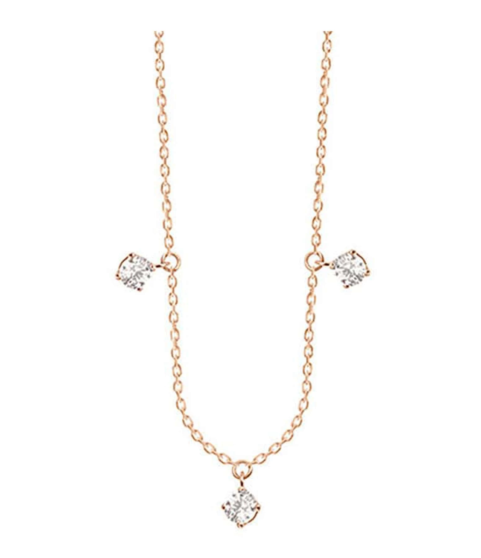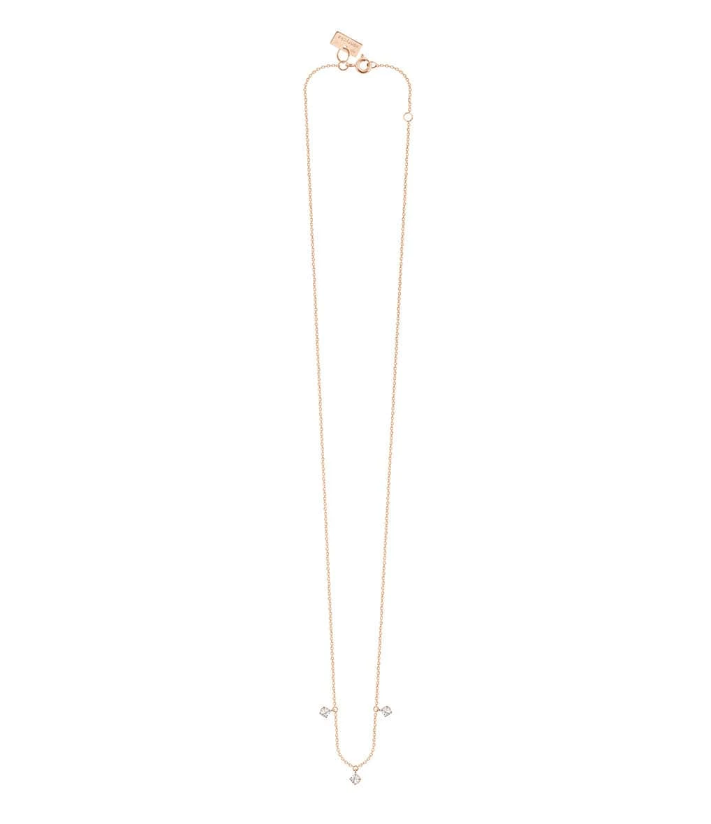 Collier sur chaîne en or rose avec trois pampilles serties de diamants blancs. Fermoir classique.